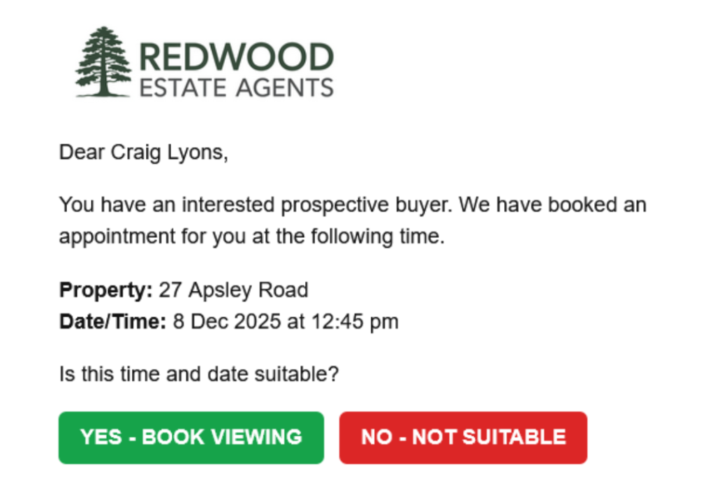 Home owners receive daily email digests so they know exactly when viewings are happening. This gives them time to prepare the property and make the best possible impression.