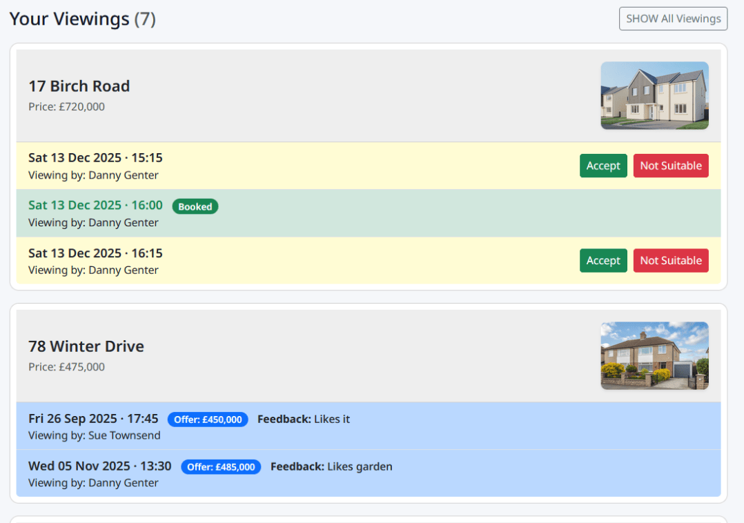 HomeViewings keeps bookings, updates, and reminders organised in one clear system, so staff, owners, and viewers always know what is happening.